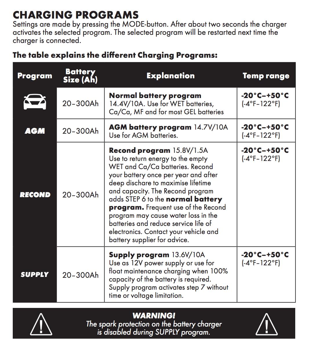 If you use the charger long term in SUPPLY mode, you will damage your batteries, and this is something that is a common cause of premature failure of caravan and motor home batteries.