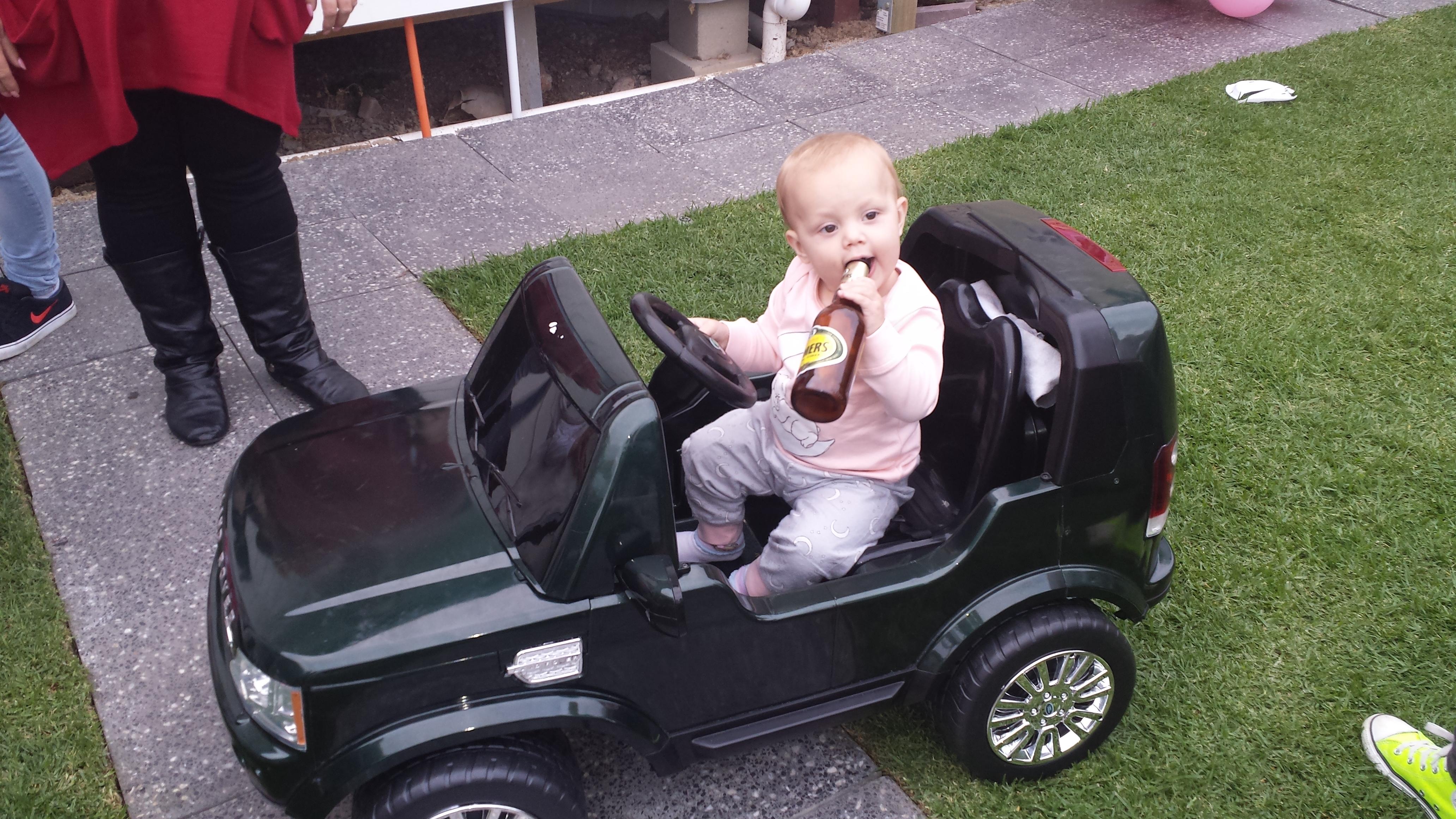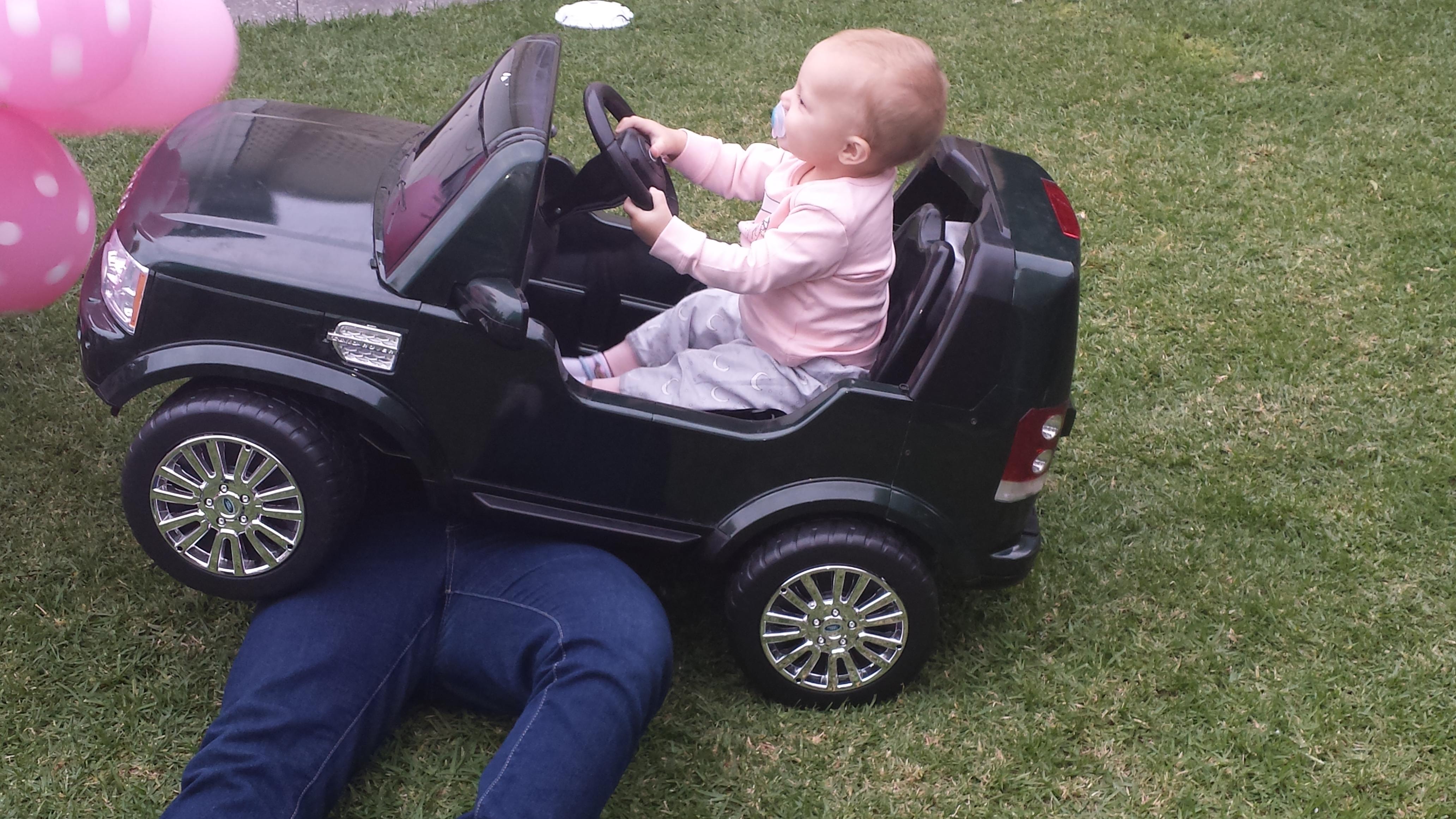 She was having a ball, and although she can't quite reach the go pedal, she had plenty of willing helpers to give her a push start.