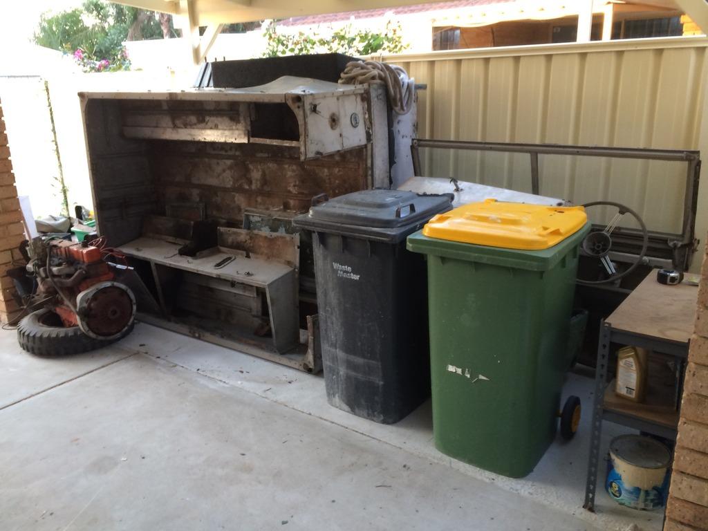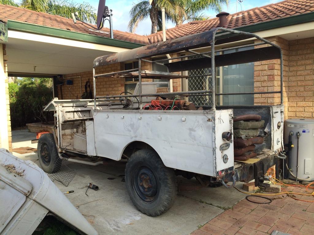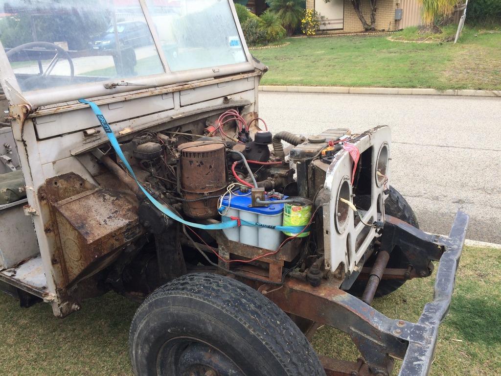 With safety being an absolute priority, the temporary fuel tank was strapped to the battery.It was quite difficult to drive as the farmer who was using it before it was parked up drove through a fence and ripped out all the brake lines. It has given me some confidence as to the condition of the engine and gearbox though. Everything seams to work except it won't drop out of 4wd when you shift back into high range.