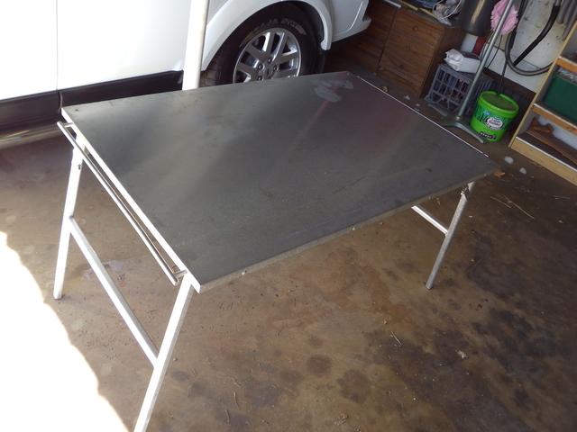 Bathroom towel rails from Bunnings make good handles (and give you somewhere to hang the tea towels when using the table).