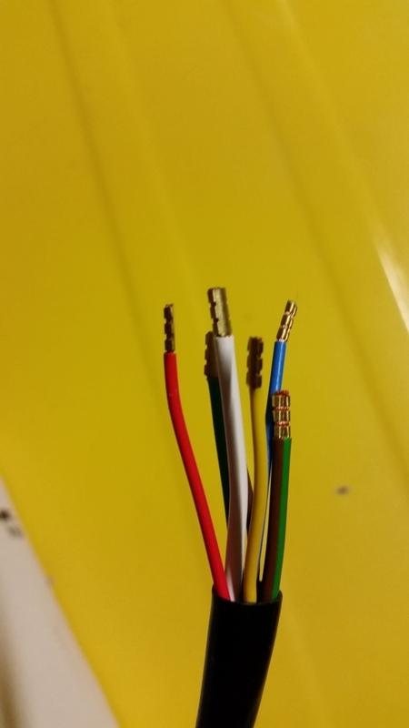 The end of the wires at the trailer plug end.  This is after I swapped the black wire for the +12v one.  The shorter wire is the 12v+: