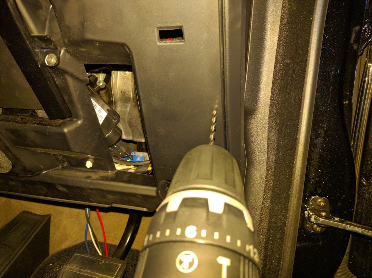 You can feel round the back of the tow pro and estimate the right place to drill. Here I used a 3.5mm bit..