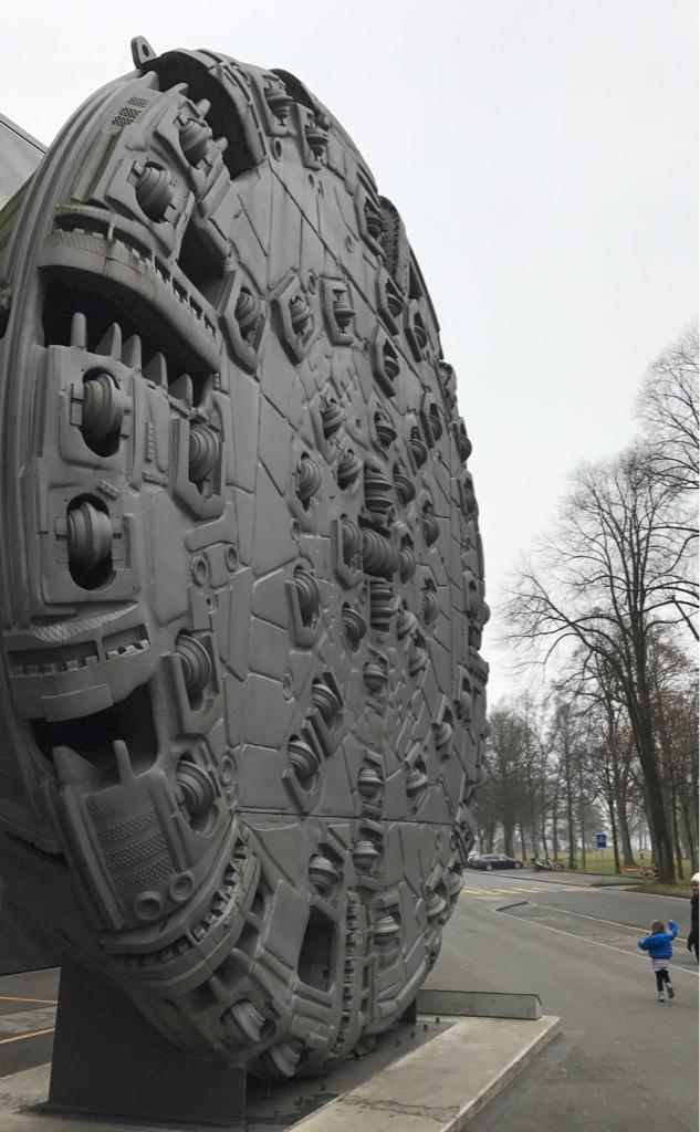 And to get a sense of how big the tunnel boring machine for the Gotthard tunnel was, here is the drilling head next to a toddler at the Lucern transport museum we visited.