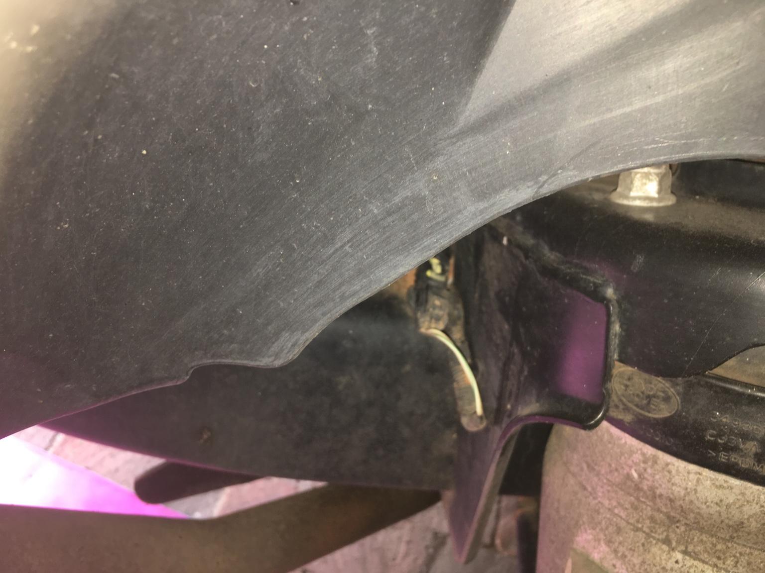 Can't see an exact match. On mine MY08 there is a big plug behind the plastic flap looking over the LHR tyre. I took this photo looking directly up from underneath showing the inside of the chassis rail behind this plug.
