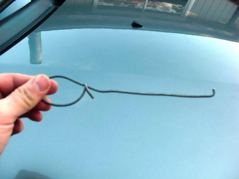Step 3 - The tool which is about 100mm in length, should go in about 60-70mm. you push it in, and then move the hook end slightly back toward the engine and then try and grab hold of the wire clip that holds one side of the airbag module/center of the steering wheel in. Once you can feel and grab the clip, pull the tool out and away from the center and the clip will release.