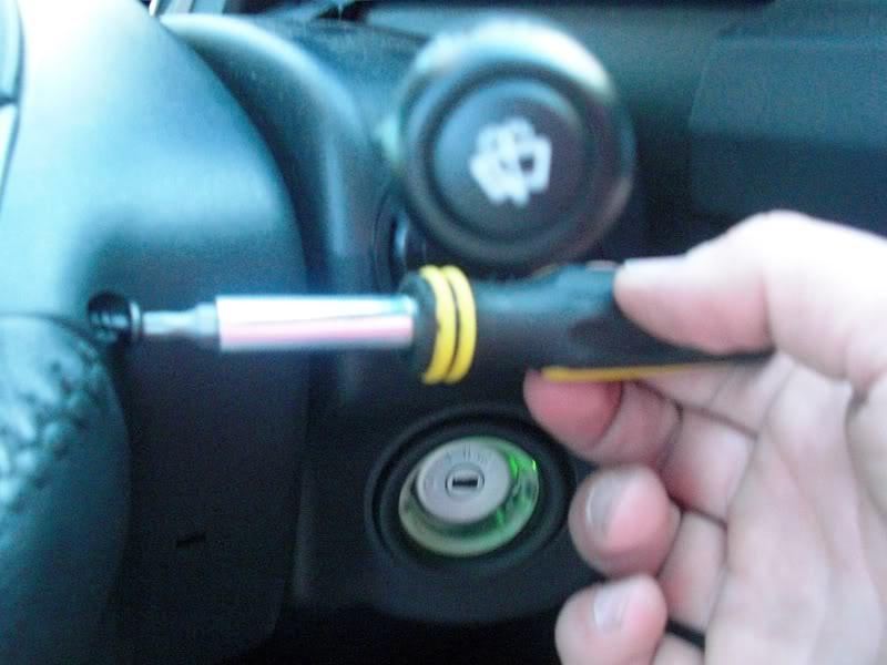 Step 2 - Insert your tool (sounds wierd) into the small slot in the side of the wheel. This is the tricky bit. It may help to scroll ahead and look at the pictures where the wheel is disassembled. You then know what you are fishing around for.