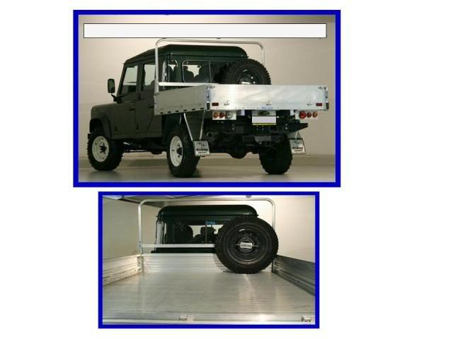 Maybe you could lift the deck height enough for spare underneath, then have a slide out draw that pulls out from the passenger side of the vehicle (would still be 1800 long) mounted in front of the spare.