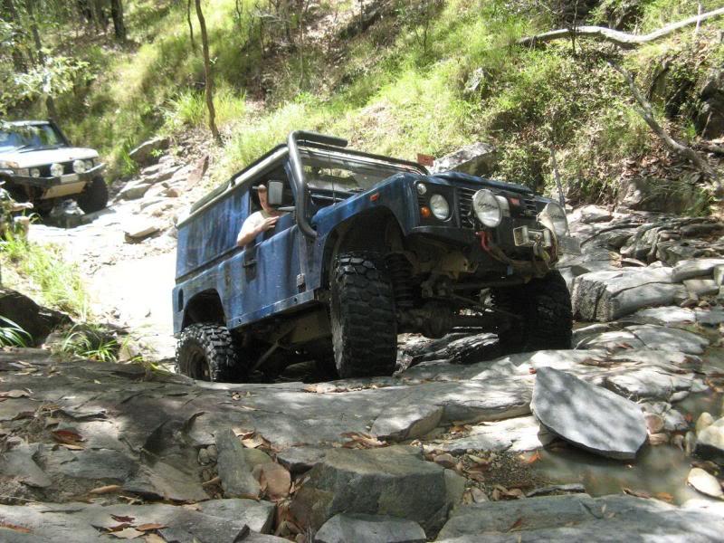 Harry: (The rock step just behind Harrys NSR wheel can normally be driven by some cars but it was so washed out that no-one managed it today. The water was about 18inches deep instead of about 6"