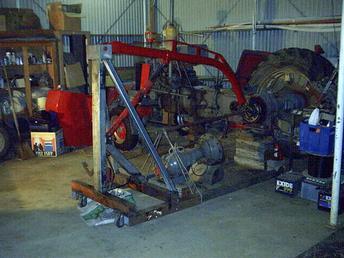 The MF 12 jib crane I own is a implement made by Massey Ferguson and I have extended the use of this very handy machine by make a engine crane stand for it.