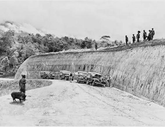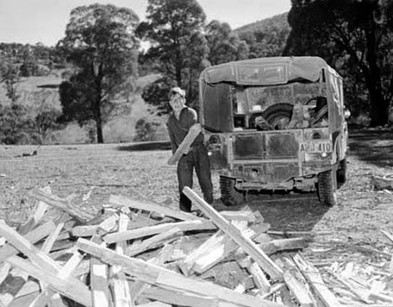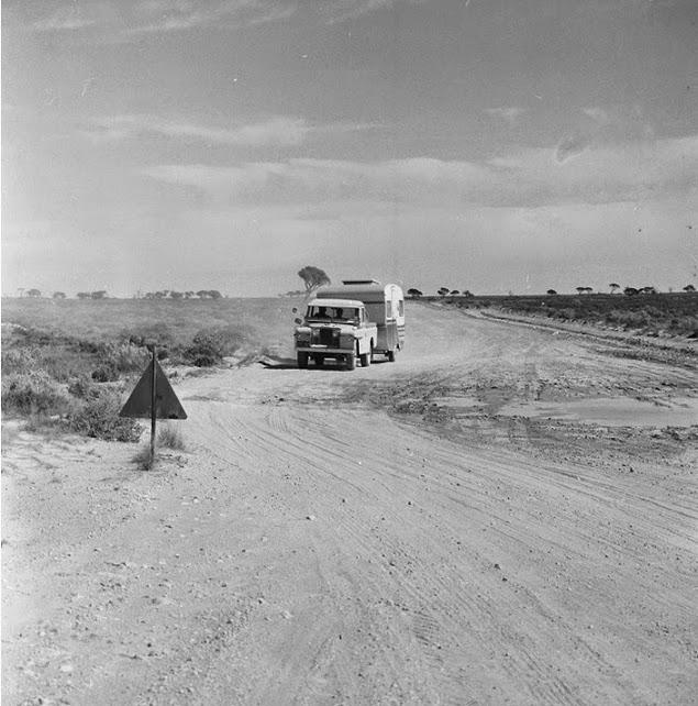 This is an evocative pic -the LR ute would be almost new condition in 1958. And to get around there in the rain.. those were the days.