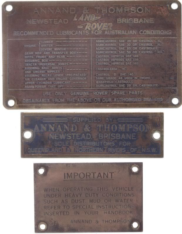 In this set of 1951 Annand & Thompson plates. The large one at the top was on the flat panel just in front of the radiator. The middle one was on the LHS facing the front passenger and the bottom one where the Grenville one is in the top image.