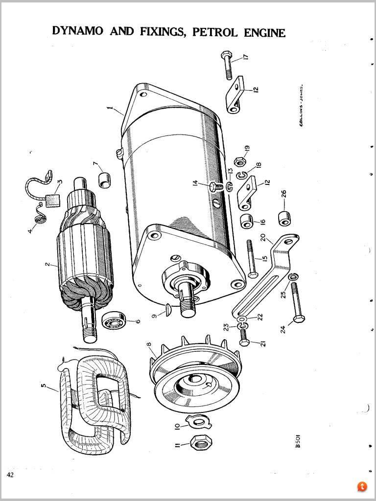 I noticed my fanbelt was loose today, crawled under to try to adjust dynamo position accordingly and found that the "Special Setbolt" had no nut on the other side. At first I assumed this was why the tension had come off the belt, but looking at this image from the parts manual, is the setbolt (Item #21) "special" because it doesn't need/have one, rather I just need to tighten it from the fan belt side with a 1/4 Witworth spanner? It passes through a threaded hole. Does the end of the bolt "grip" the adjustment slot (part#20)? The diagram shows no nut.