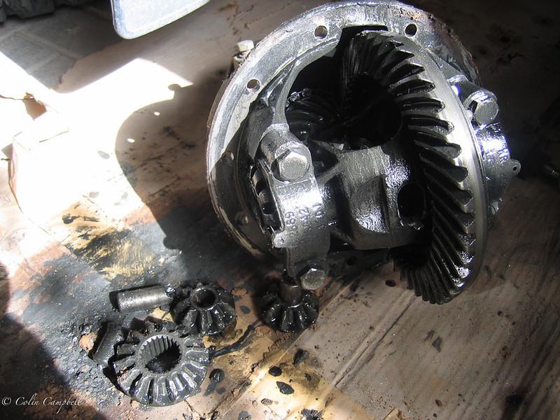 Here's a picture of the front diff after it let go, you can see the elongated holes in the carrier where the cross pins goes. This broke early on before I did much hard off roading with it. It's a shame they are so tight and didn't fit 4 pin diffs to the front as standard instead of these crappy 2 pin ones.