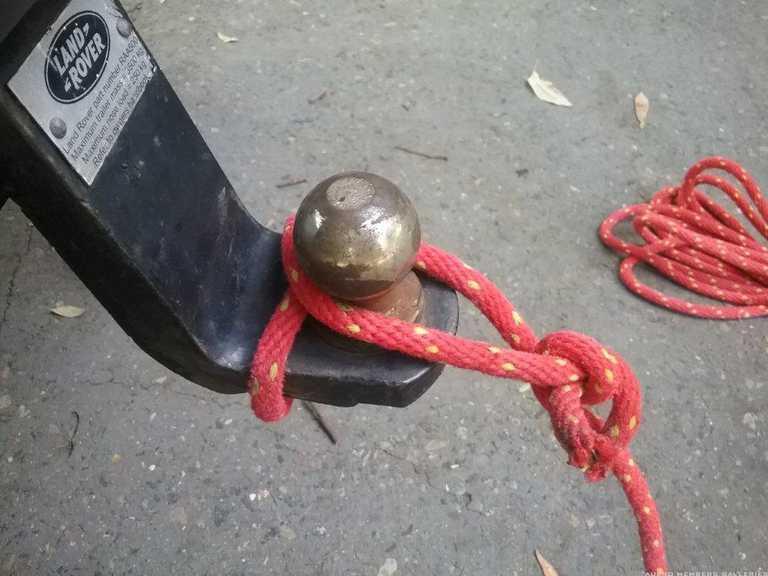 If you are going to go to all the effort to tie that knot, why don't you just remove the tongue and insert the strap into the receiver and use the pin. I have done heaps of snatches and winched from the tow hitch using the pin with no problems at all. The other good thing is, if it does break the pin, it weighs a hell of a lot less than a tow ball so won't do as much damage.