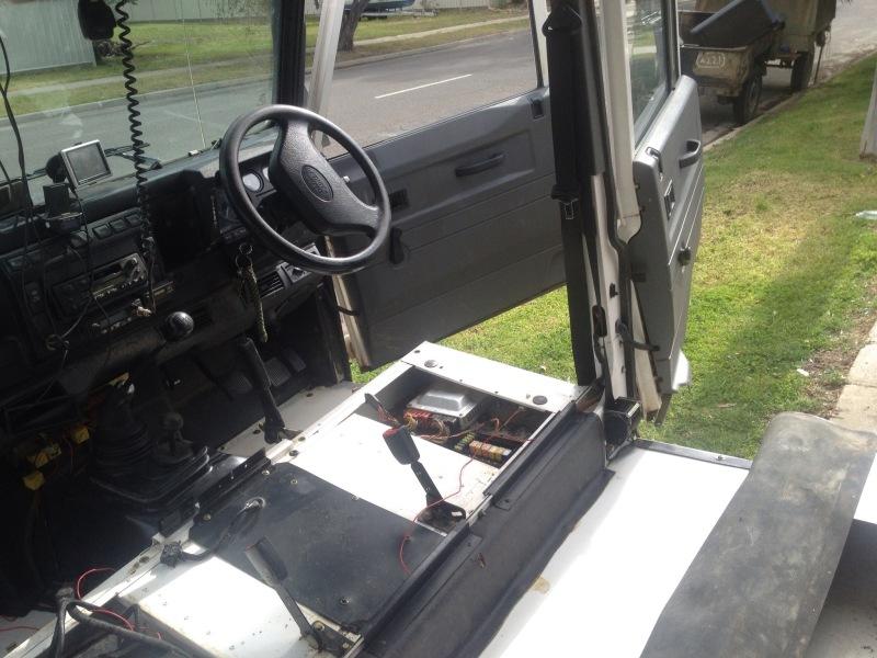 Have had a ongoing hassle with the excite wire for the alternator. Dam cheep Chinese wire keeps breaking near the alternator,usually at night so I have to get around with lights running of the battery. So today I replaced the whole wire with some good quality wire, the wire is the tinned sort. Have recently fitted a dual battery box behind the drivers door. This left a missing bit of pannel from where the old single battery box door used to cover. Made up a bit of panel that fits well. Will now have to weld it in place.