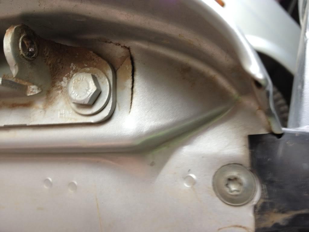 Didn't notice before but the metal on the A pillar was also cracked where the door check strap is attached.