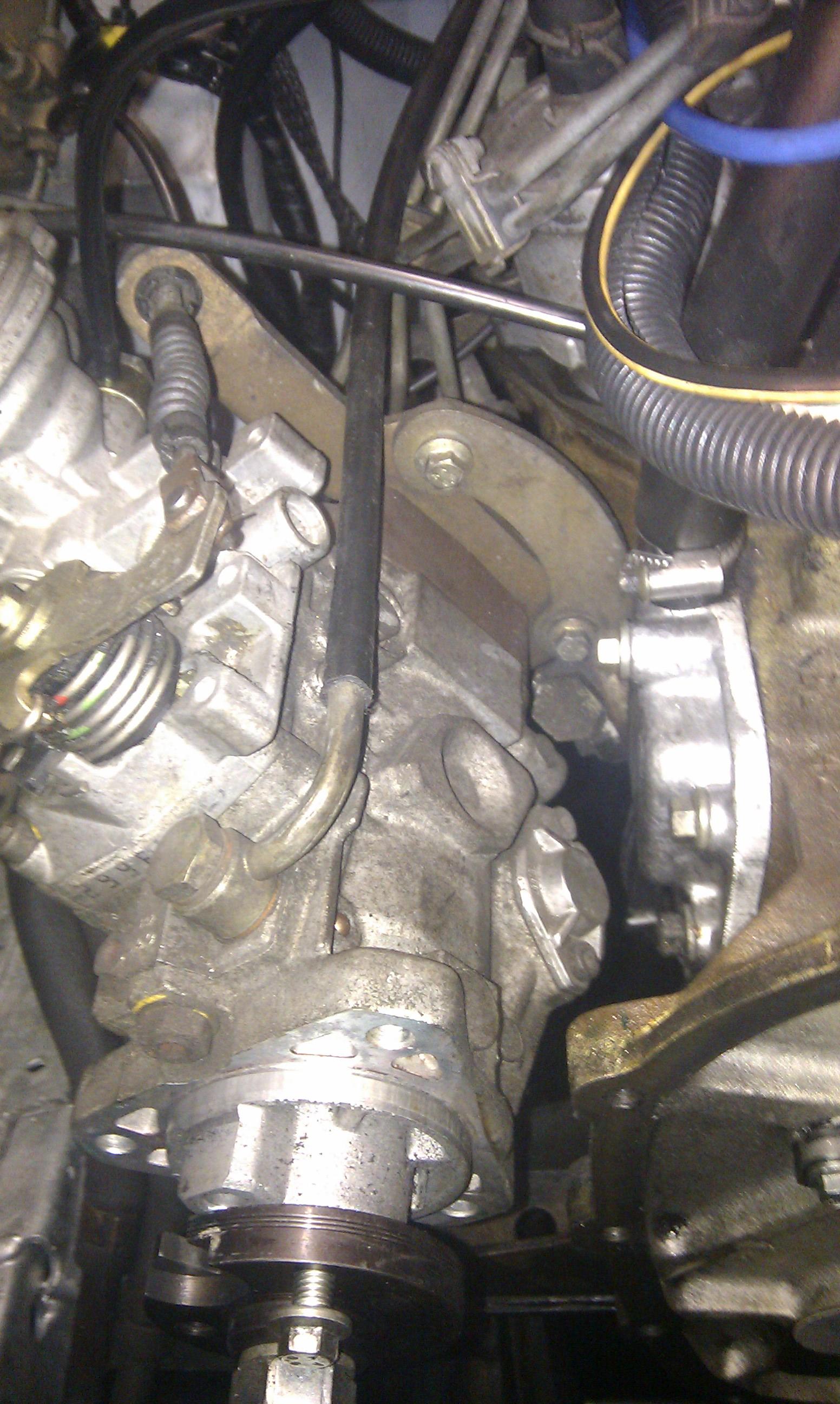 The injector pump is on as it was when I removed the old timing chest, held in position at the back by a bracket to the engine block. The timing case has three studs on the back to fix the injector pump to the timing case. The problem I have is that when I offer the studs on the case up to the pump it shifts the timing case to one side a fraction - enough that I cant locate the case dowels into the engine block.