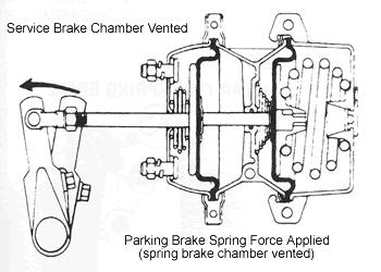 I think that they work with spring actuated shoes on drums, the compressed air is used to hold off against the springs. Removal of air pressure releases the springs to activate the brakes. No air pressure, you don't move. I think is is standard on bigger trucks.
