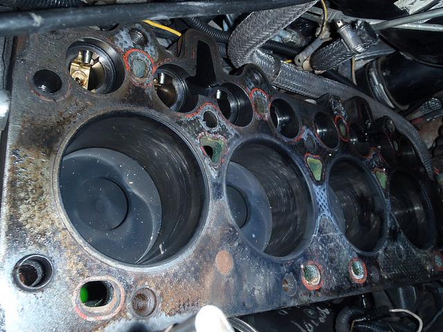 Not easy to tell, looking at a pic, but it looks to me that combustion gasses have been leaking from #2 across to the nearside of the block and also into one of the water jacket holes, how's about a pic of the combustion side of the head, Regards Frank.