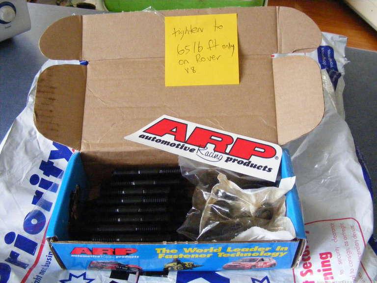 Remember the studs themselves are little more than finger tight (the instructions are clear on what the procedure is on this aspect) however the nut torque setting is 80 ft lbs for the Buick 215 studs and 100 ft lbs for the Rover V8 studs.