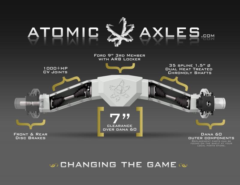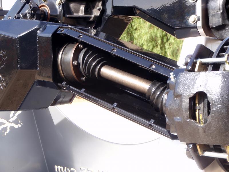 Actually they're a bolt in for jeeps (of course), options for new chassis mounts for longer arms, redesigned sump to get even more up travel. The CV's and shafts are the same as used for most premium buggy/truck trans axle applications. You'd be hard pressed to break them as they're landed on for great heights full tilt.