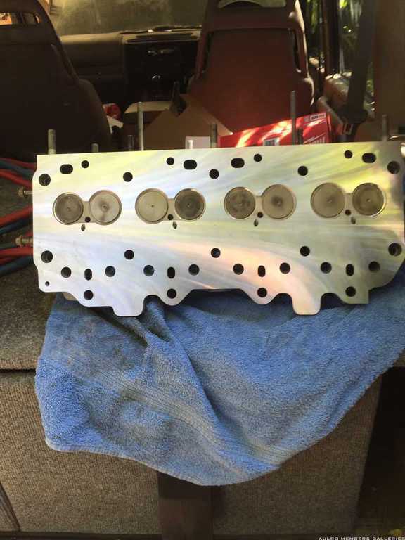 OK, after all the faffing around with the crank pulley bolt, I have the belt fitted. Time to put the head back on. The head was taken down .005", and the valves were seated to suit.