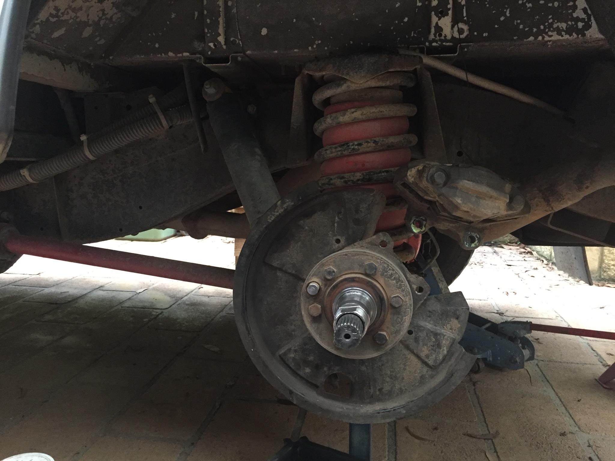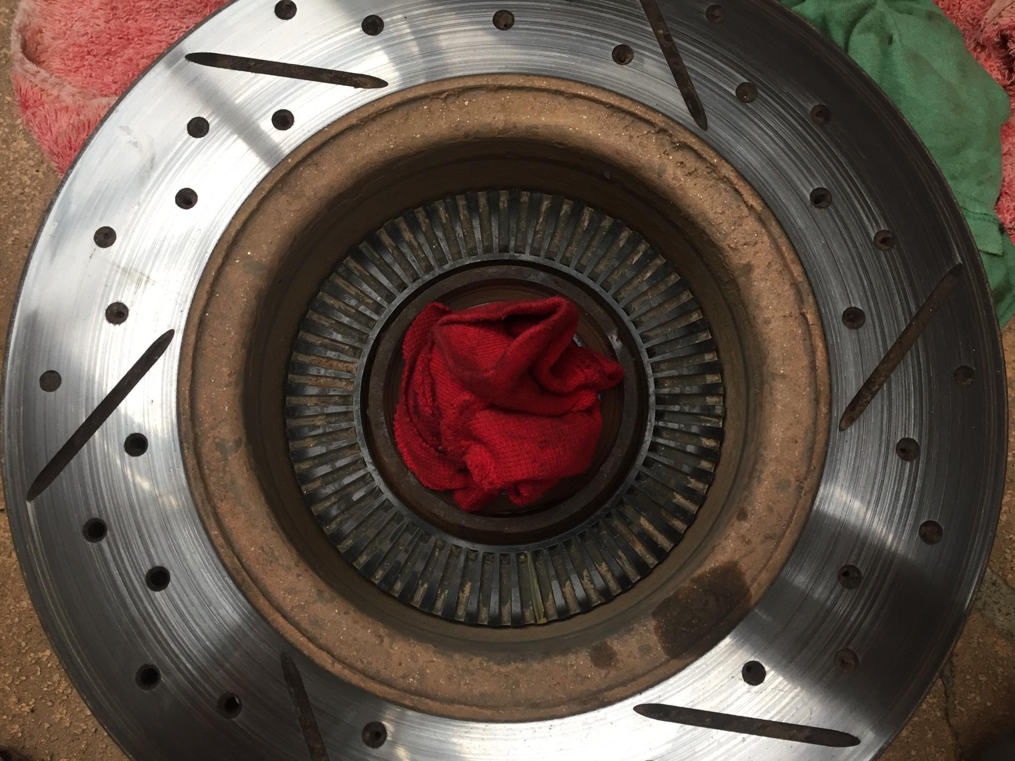 Then the time came to do some work on the car, brakes needed doing so new discs and pads for the front, and the rear. Although the rear was not as simple as the car has a sals transplant and I couldn't find any abs discs so I drilled some discs to fit the rings using the old discs as a template.
