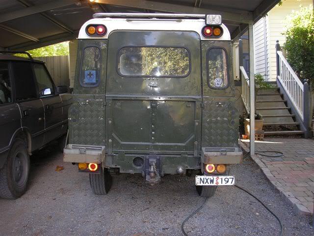 The army have a Hella combo lamp below the jerry can holder. I had those mounted too, but recently (after cracking the lens) replaced them with a waterproof LED combo light. I've also mounted the original indicators & park / brake lights in the oval series military protectors on the back of the roof, so people can see which way I intend to turn if they're a couple of cars behind me.