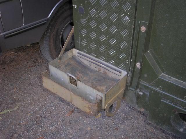 I also just bought on ebay a twin jerry can mount which I plan to fit to the tail gate, only for very long range trips (Simpson Desert). I'm sure the tailgate hinges on a series Landy can handle the 40kg, since they handle a lot more when you stand on them.