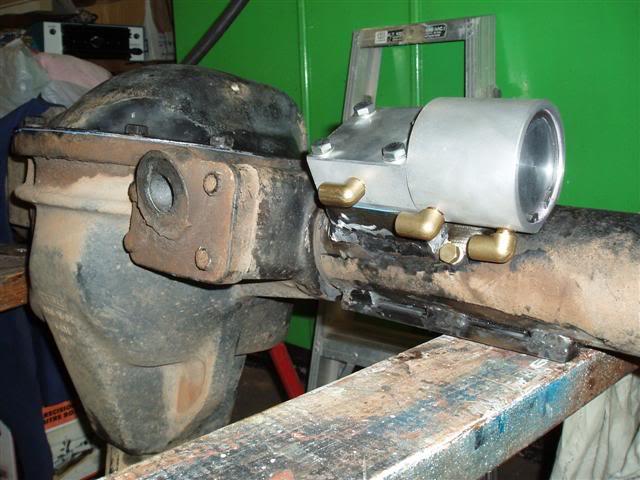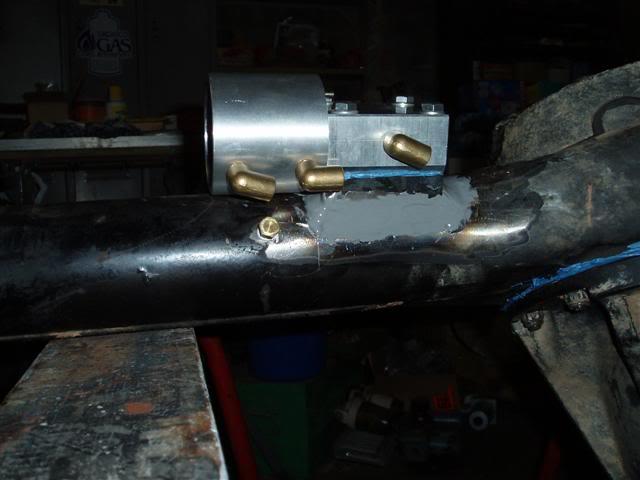 After setting up the housing to pre-stress it, it was just a matter of taking to it with the die grinder to cut the hole, and welding on the mounting block for the vacuum actuator. Once again, Mal supplies a jig to set up the mounting block in exactly the right place. Even I couldn’t stuff that up. :roll: