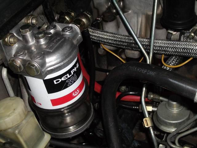 Result: A 6 micron filter easy to find filter costing $8 instead of a 20 micron $35 hard to find filter, and a backup system - if the CAV blocks, I just replace the original sedimenter assembly, and go back to factory filtering. And come replacement time, it seems easier to access the rear than where the front is (Draining the front is messy, difficult amoungst injector pipes.)