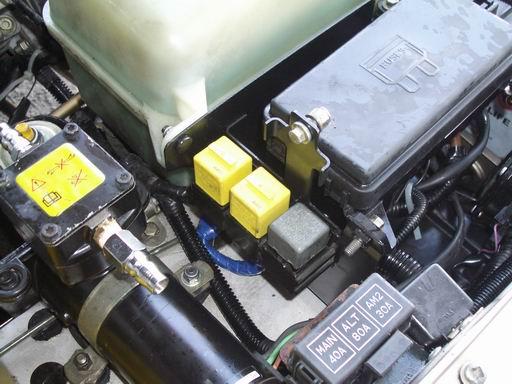 Using plain brass female spade crimp terminals, I replaced the wires for the fuel pump and ABS -they fit into the original plastic sheath( there's no wire for injectors), and led the wires out to near the glow plug timer relay. I haven't used the main fuse yet - I might hook up my monster spotlights with it.