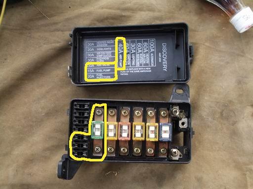 Now in a MA TDi Disco, there isn't ABS, nor an electrical fuel pump nor electrical injectors. So that's three blade fuses that can handle 30-15-20amp, and a main fuse of 40amp. (Nice to know if you somehow blow one of the others you can use it as a spare)