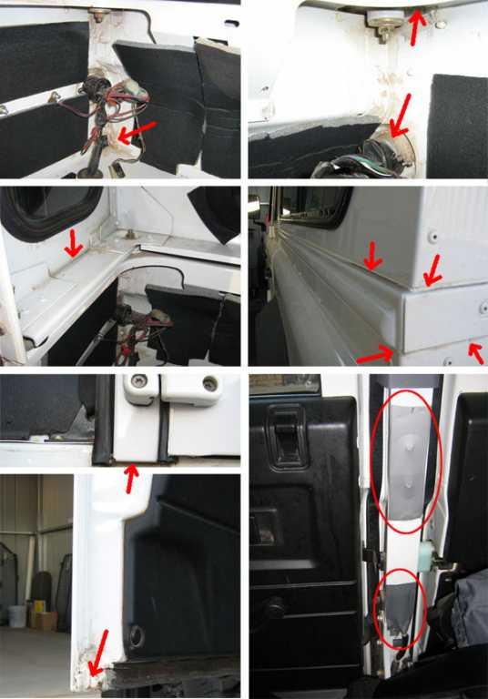 Red arrows show where to apply silicone (red ovals show sealing tape i used):