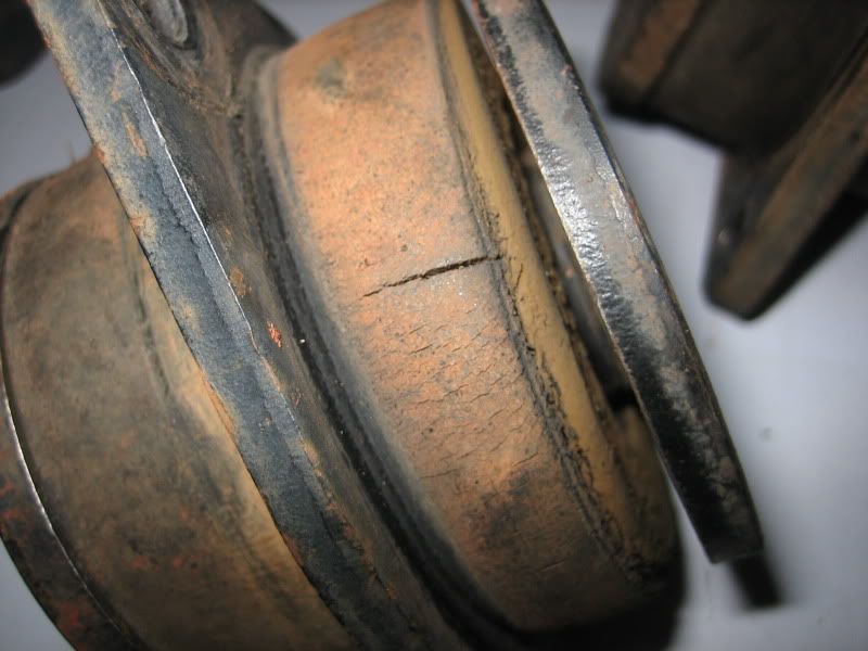 Rubber behaves as a brittle material under 3 dimensional stress, and this can occur where it is bonded to the steel components or where it is trapped such as the parts of Isuzurover's radius arm bushes. Bonding rubber to steel is an appropriate procedure, but provision has to be made for deformation, and adding the 3rd bonded shell to radius arm bushes not the way to go