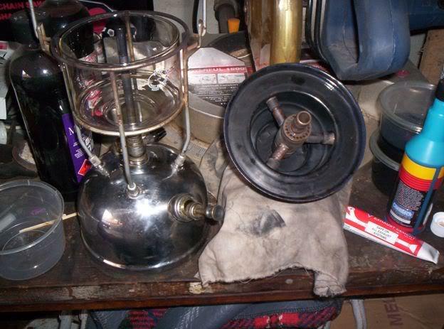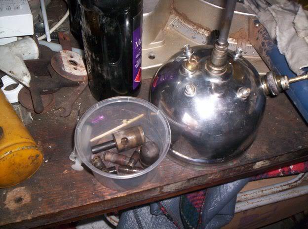 Stripped down, new seals fitted to the bottom end and control cock, and a new Tilley 606 vaporiser. Burner stripped and soaked in degreaser to remove carbon and waxy deposits.
