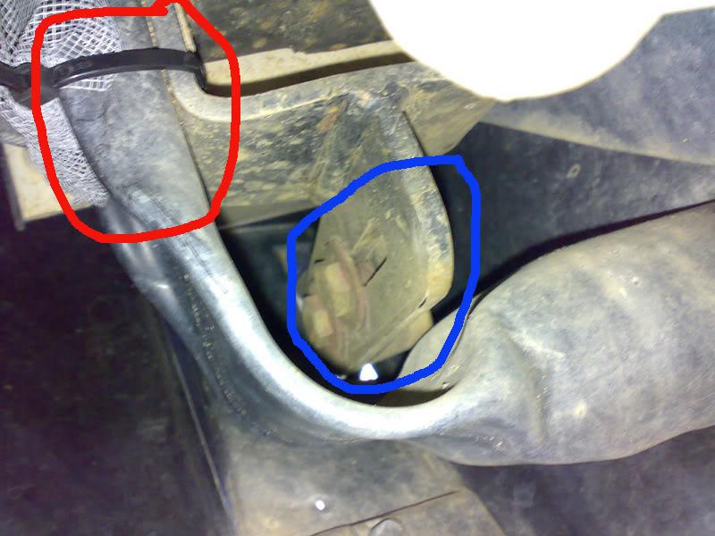 It doesn't bolt direct to the chassis but bolted to a large bracket [circled in blue] which is then bolted to the chassis rails [circled in red].
