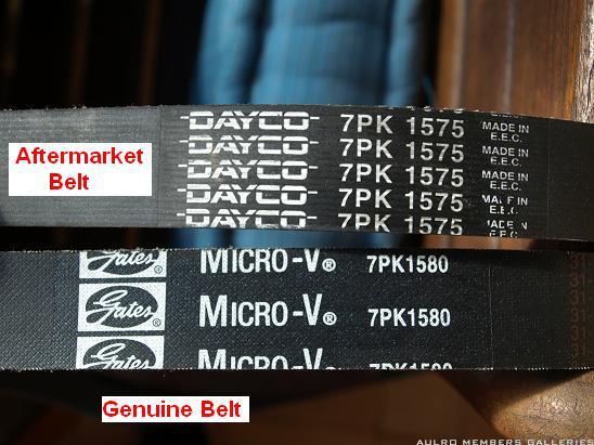 The Dayco one was definitely squealing on the back of the belt over the flat pulleys. Its a different construction to the Gates one and doesn't have the fabric layer on the back: