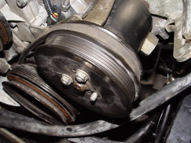 1: Undo the 3 bolts hanging onto the metal pulley ... pulley falls off