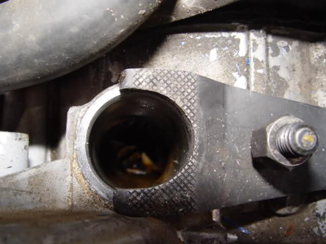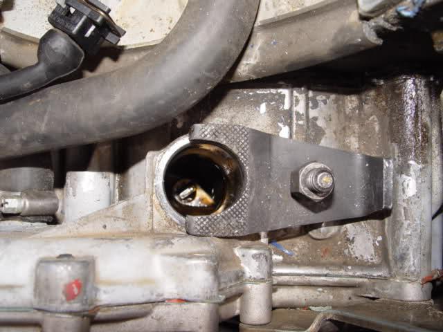 6: Undo the 3? bolts hanging onto the pump at THE FRONT of the bracket ... Pump falls down and just pick it up and remove it out through the space between bracket and engine block