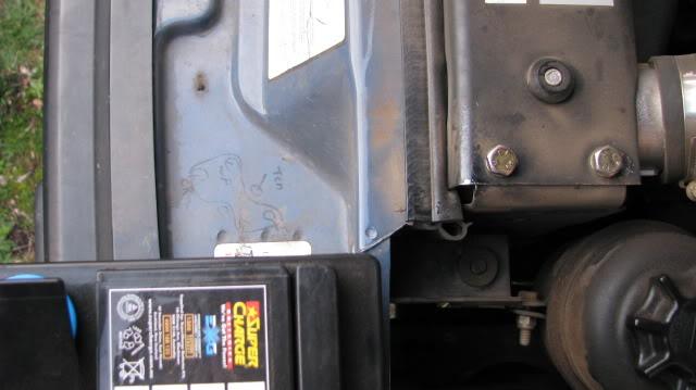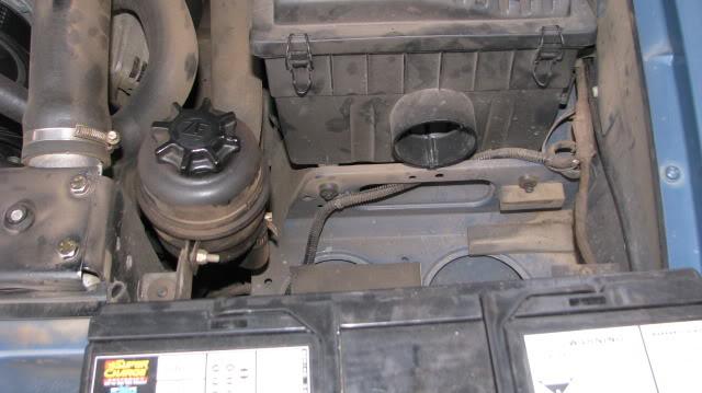 Moving the power steering bracket gives enough room to fit a N70ZZ size. This battery is 70mm longer than N70ZZ type and only just fits between the intercooler support panel and the inner guard.