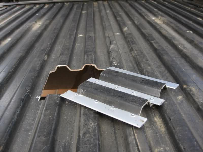 As you can see the existing floor is aluminium. Gota love Rover for that at least. I cut up some strips of an old Computer Case and rivited them to panel i just cut out.