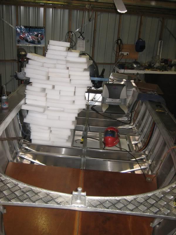 Flotation foam etc.... Only ~0.55 m3 standard. Seems a bit low! Need to do some buoyancy calcs... Extra ribs/stringers welded in - to support floor and allow me to make it semi-sealed.