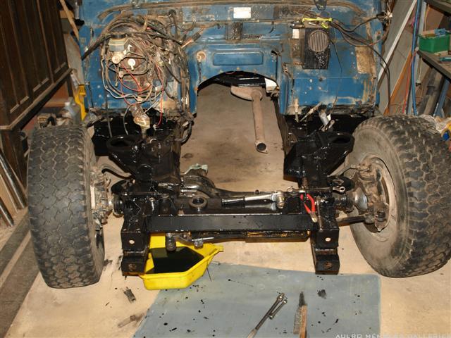 Front half of the chassis cleaned, a coat of penetrene, and painted with chassis black.