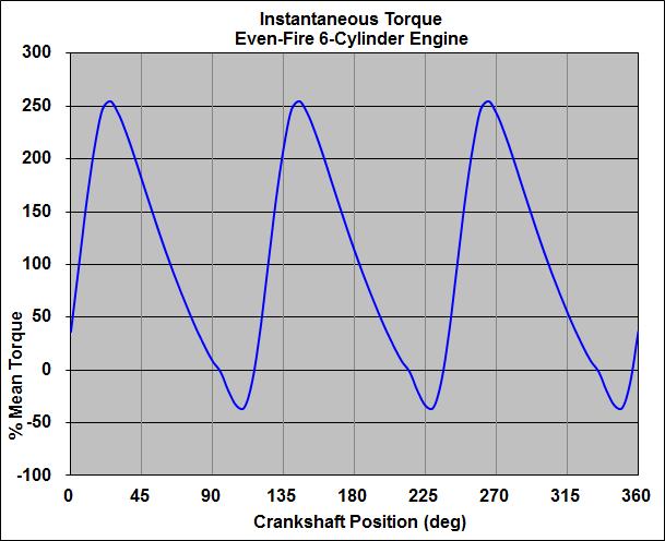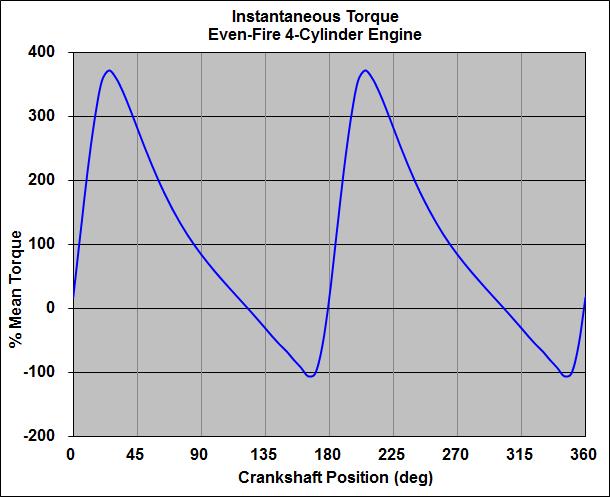 Explanation here Torsional Characteristics of Piston Engine Output, by EPI Inc.