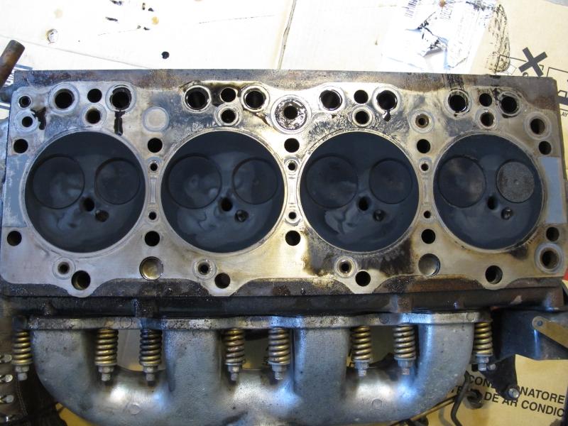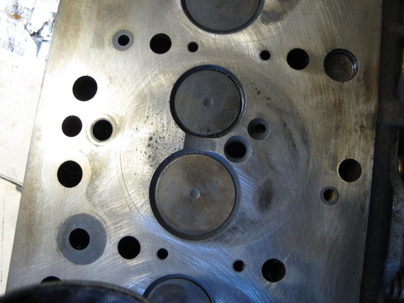 Surprisingly all the bolts visually checked out fine and soo did the head once cleaned up. Note the pock-marks from debris with a failed air-cleaner many years ago. I still have the pistons from that rebuild, a stone is embedded into one.