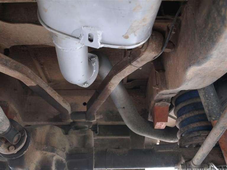 Out the side would probably be better, but I just copied the 2.5" one that had been in there from its 200tdi days. I haven't actually had this one seriously offroad since I did the back half in 3", but never had a problem with the old (albeit smaller diameter) one exiting in the same place.