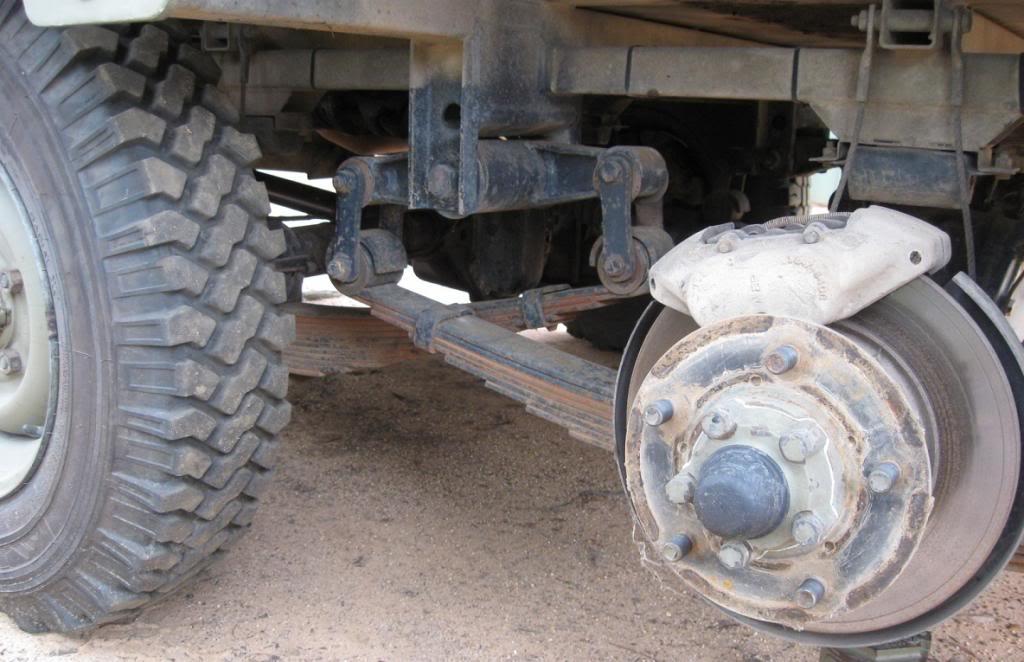Unladen, the rear axles are 940mm apart. When loaded with up to 2 ton payload and under full articulation, the design of the load sharing rocker means that as the leaf springs flatten, the axles move closer together.