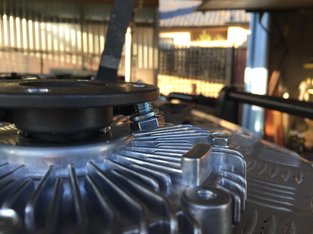 After removing the Isuzu fan, it was encouraging to see that the 4 bolt PCD was exactly the same, however the Nissan hub uses M6 mounting bolts. The holes in the viscous hub flange were easily enlarged with a cordless drill to match the Isuzu M8 bolts, which still left plenty of edge clearance.