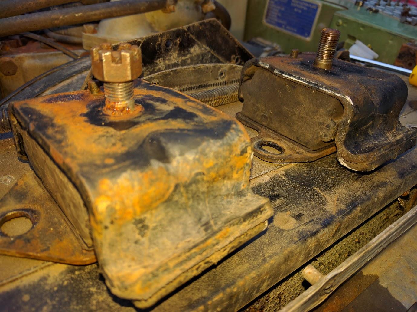 I have started undoing the current mounts, although the top side is real hard to get to, one side some oil line and other side injector pump. also they are castle nuts for some reason but i dont think they have a split pin or anything.